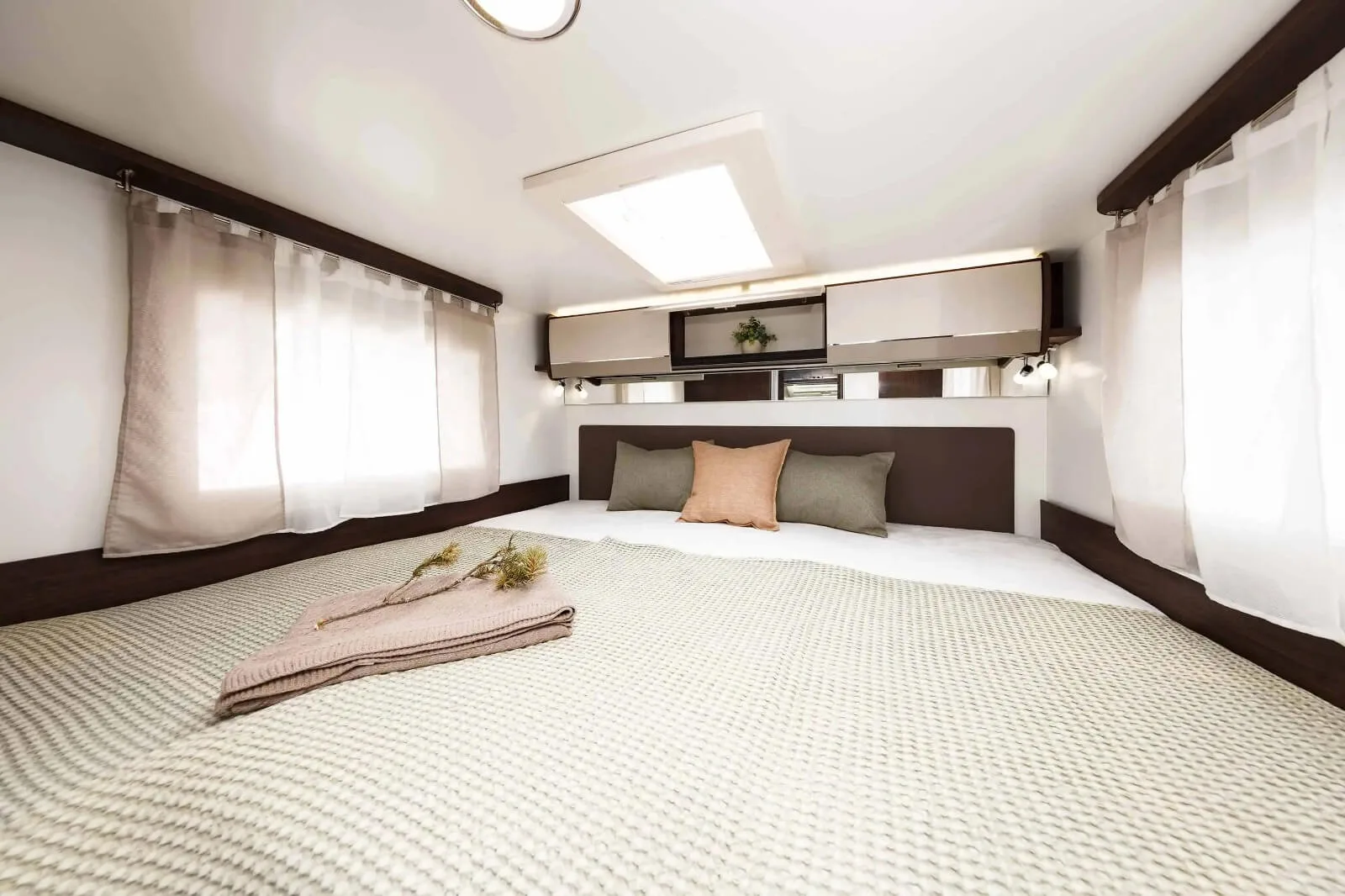 Additional equipment of the camper includes: ESP+ABS, air conditioning in the driver's compartment, high quality and turning seats of the driver and front passenger, cruise control, el. the top of the glass, el. adjustable and heated rear-view mirror, 16 " wheels, airbag for driver and front passenger, central locking, panoramic window with shadow and mosquito net.